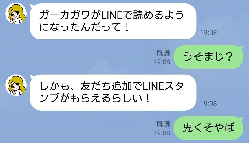 さらに、ガーカガワのLINE公式アカウントを友だち追加することで「トーク」から配信記事を読むこともできます。