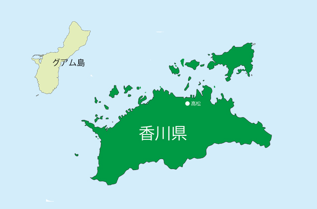 でも、ちびっこい離れ小島というイメージのグアム島でさえ、香川県と並べるとそこそこ大きい事に気づきます。