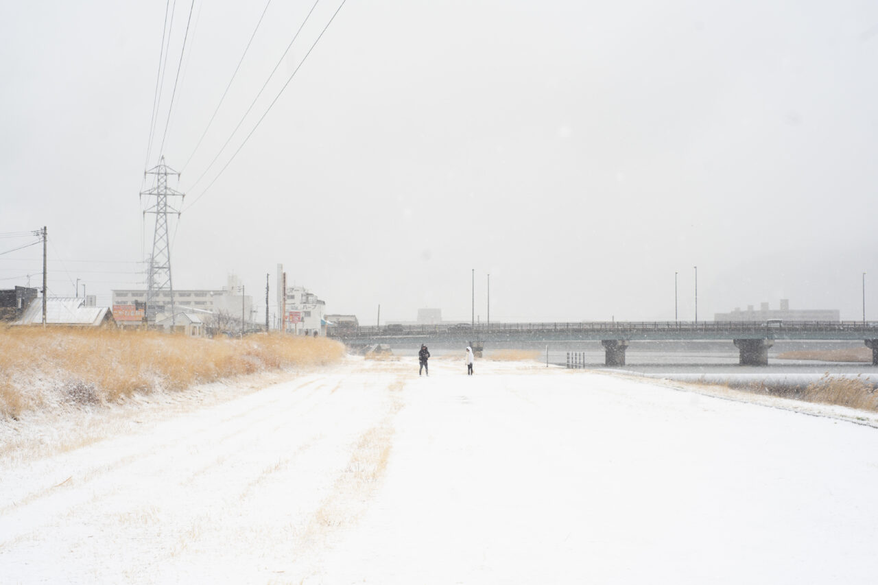 日曜日とあって、高松市春日川の河川敷では、積もった雪に誘われて近所の子ども達が大勢雪遊びをしていました。