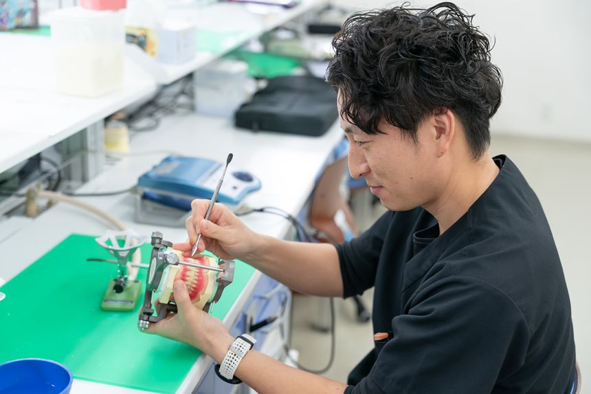 歯が欠けたり失われると、人は思い切り笑えなくなります。歯科技工士の仕事は、歯を作るだけでなく、人の笑顔と前向きな気持ちを取り戻す仕事なのだと感じています。」