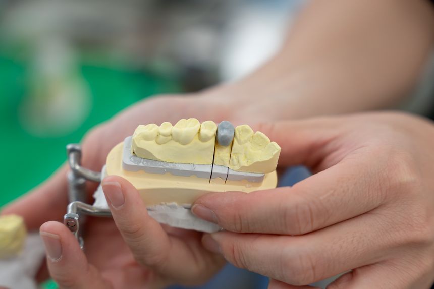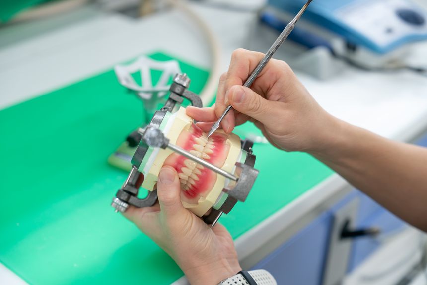 まず歯科技工士について簡単に説明すると、歯科医師の指示をもとに、入れ歯や差し歯、被せ物などを作る専門職で、患者さん一人ひとりの口の状態に合わせて、噛みやすさや見た目を考えながら、細かく正確な作業を行います。直接治療は行いませんが、歯科医療を支えるものづくりのプロとして重要な役割を担っています。