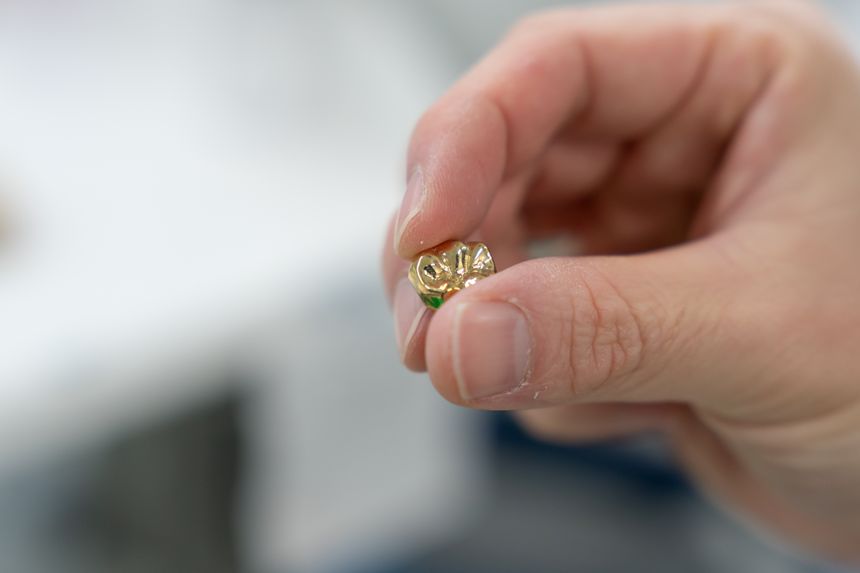 尾幡さん「歯の噛む面のことを咬合面と呼ぶのですが、この咬合面の溝の入り方や、隆起に人それぞれ個性があり、真っ平らな方もいれば、モリモリ、ウネウネしてる方もいます。歯科技工士業界ではモリモリ、ウネウネな咬合面が人気で、この歯に出会うと各自、モリモリ、ウネウネした歯を全力で再現しにいきます(笑)」
