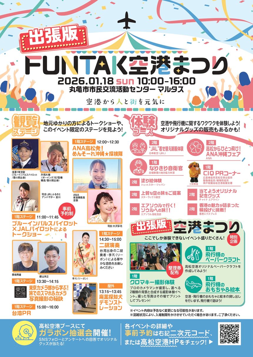 高松空港が主催する「出張版!FUNTAK空港まつり」が、2026年1月18日(日)10:00〜16:00に丸亀市市民交流活動センター(マルタス)で開催されます!