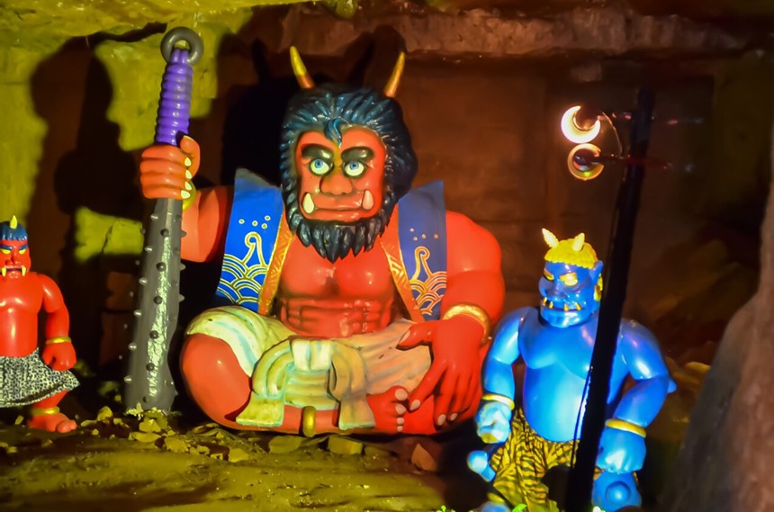 そして10分ほどで鬼ヶ島洞窟に到着しました。大人にはコミカルに見え、子どもにはちょっぴり怖い赤鬼さんが皆さんを迎えてくれます。