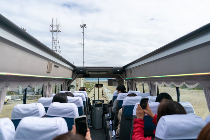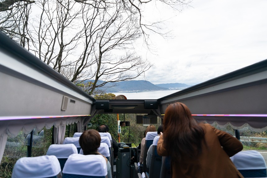 さて、試運転の日はあいにくの曇り空でしたが、潮風を感じながらの開放感はまさに瀬戸内そらバスを彷彿とさせるもの。中型バスなので若干狭く感じますが、だいたいグループやご家族で乗車されると思うのでそこは大きな問題にはならないでしょう。