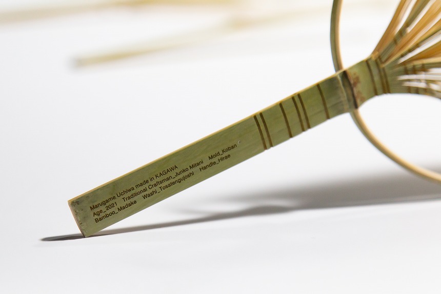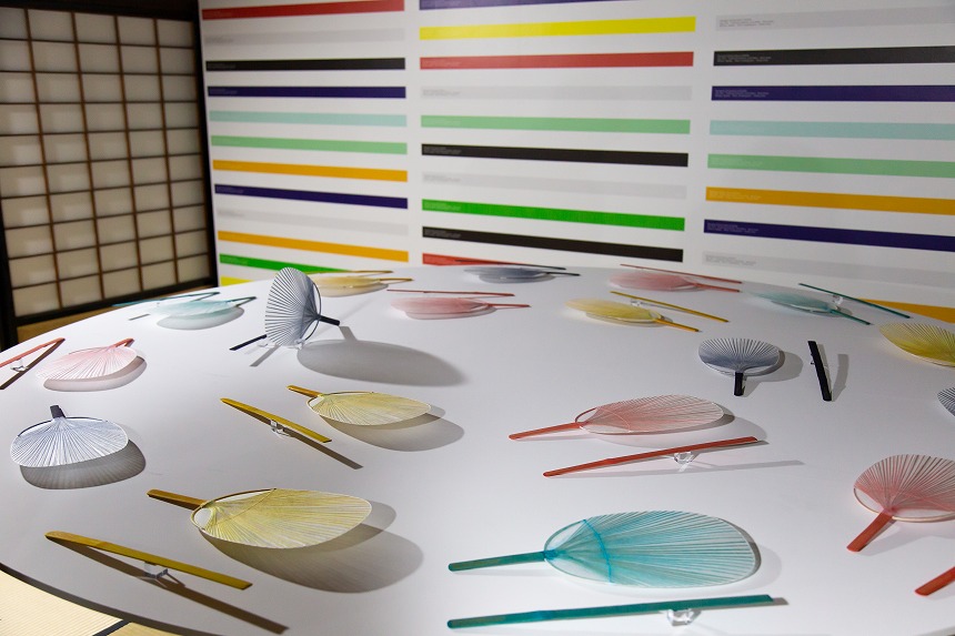 丸亀うちわ伝統工芸士の三谷順子氏とアートディレクター小杉幸一氏がコラボしたうちわには、カラフルな色や刻印など、これまでの「竹の素材をそのまま生かす」技法を超えた新しい試みが。