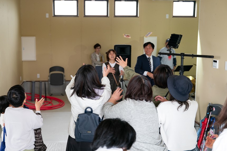 お菓子や豪華賞品が書かれた札がまかれると、会場は一気にお祭りムード。こういうのって、思わず拾ってしまうんですよね(笑)