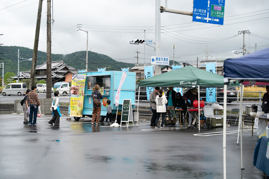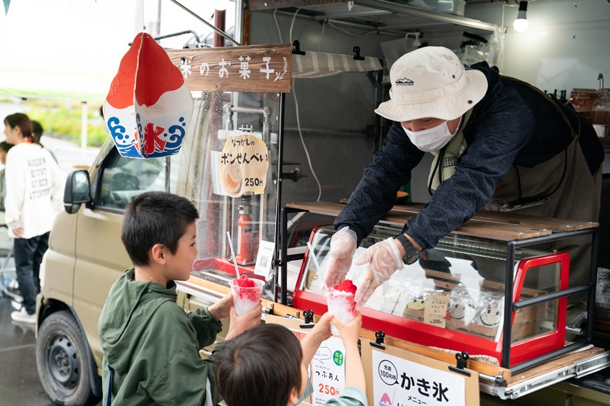 この日はあいにくの雨模様だったのですが、かき氷やおでん、カレー、ピタサンドにアスパラドッグなどの出店もあり、イベント開始前から多くの人たちで賑わっていました。