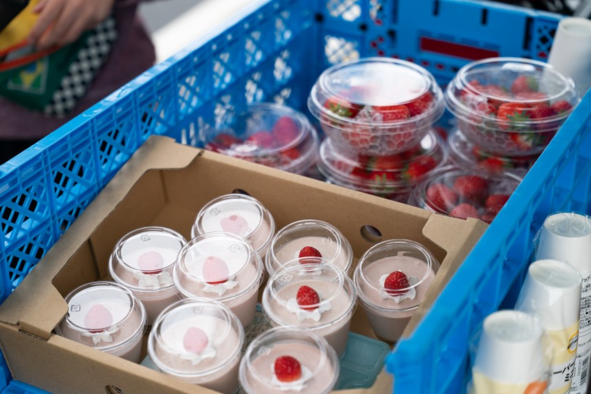 せっかくなので出店ブースも覗いてみました。綾川町の若手農家さん達のブースでは、収穫された苺を使ったスイーツや、アスパラガスを使ったホットドッグなどを販売。