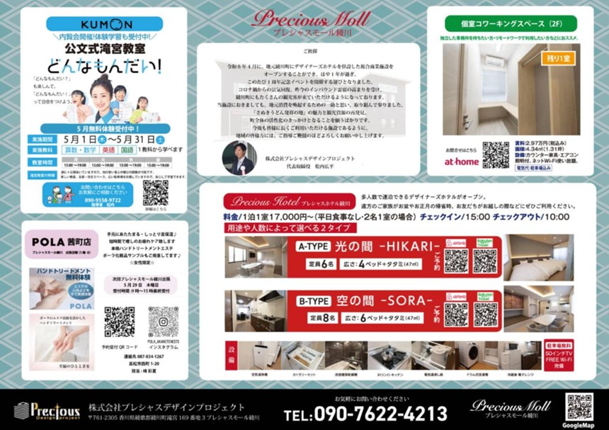 関連記事 ホテル、塾、コワーキングなどの複合施設「プレシャスモール綾川」オープン
