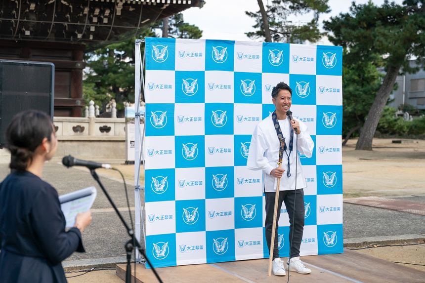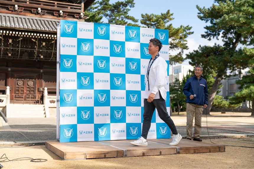 イベントの開催にあたり、プロジェクトアンバサダーとしてケイン・コスギさんを迎え、総本山善通寺にてキックオフイベントが行われました。