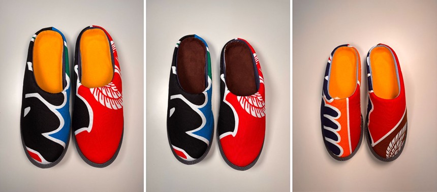 今回発売されるのは、歌舞伎の世界観を取り入れたルームシューズ。手がけたのは、こんぴらさん参道の老舗染物店・染匠 吉野屋と、さぬき市のシューズメーカー・徳武産業。意外にも今回が初コラボなんだそう。
