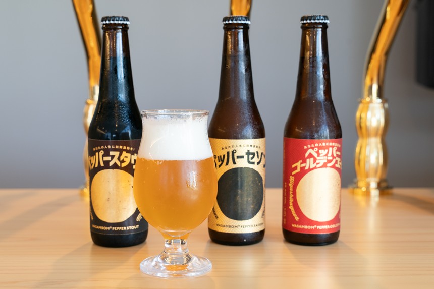 ペッパーセゾンは和三盆のやさしい甘さとペッパーの後味が絶妙(アルコール5.5%)、ペッパースタウトは黒ビールの深いコクに胡椒のピリッとした刺激がクセになる飲み味(アルコール6%)、そしてペッパーゴールデンエールは華やかでまろやかな仕上がり(アルコール8%)とのこと。