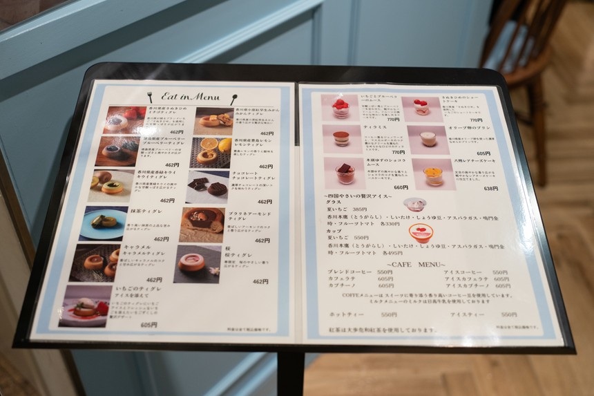 そのラインナップは多彩で、例えば香川県産苺「さぬきひめ」を使ったものや、同じく香川県産香緑キウイ、香川県産豊島レモン、徳島県産ブルーベリーといった四国の果物のほか、抹茶やキャラメル、チョコレート、季節感のある桜など、ほんとどれも美味しそう。