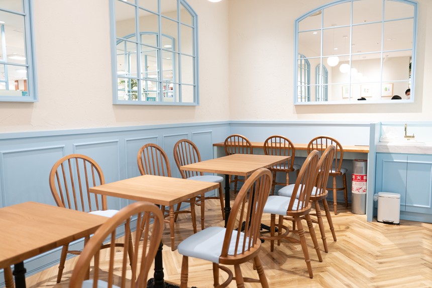 店舗の奥にあるので、買い物客の視線が気にならずゆっくり寛ぐことができそう。