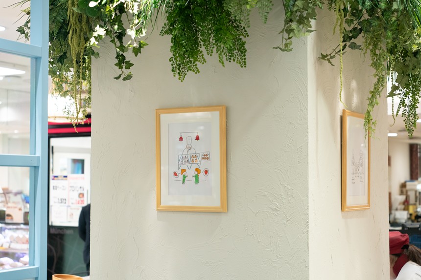 壁には「Maison de CIEL et MER(メゾン・ド・シエルエメア)」のコンセプトとなった、香川県在住の画家・山口一郎さんによる絵画も飾られていて、絵本の世界観を感じることができます。