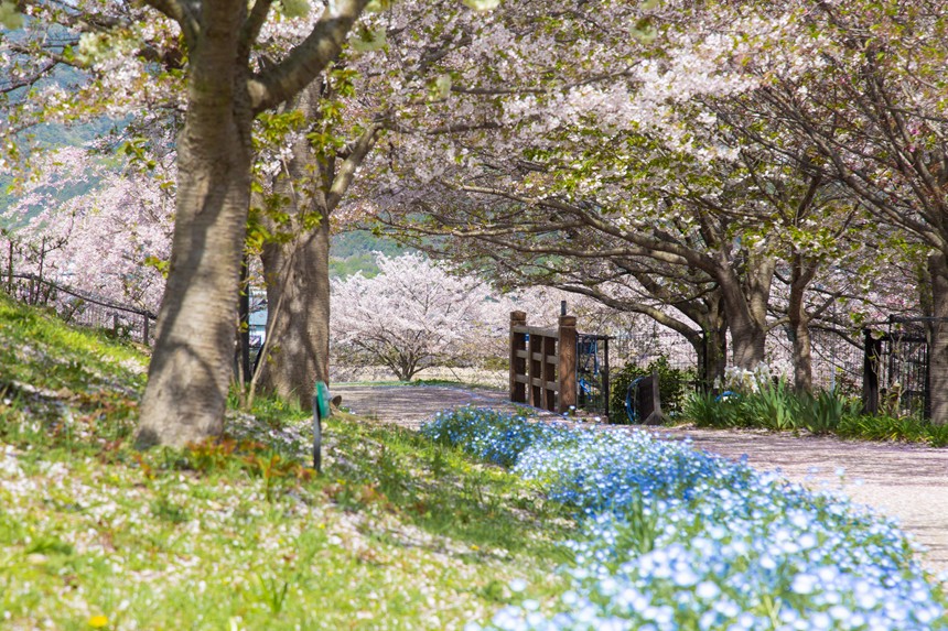 以前プライベートで訪れた時は、ちょうどネモフィラの開花時期と重なって、桜とのコラボレーションがめっちゃ綺麗でしたよ! 春もおすすめ!