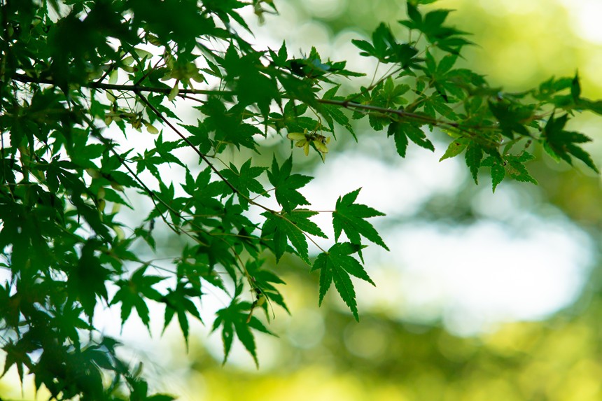 でも、確かにこの暑さだと外に出る気にもなれないのは分かります。ヤギさんたちにはこのまま涼しいところでのんびりしていただいて、ちょうどヤギ小屋付近の緑が綺麗だったので、少々撮影をすることにしました。