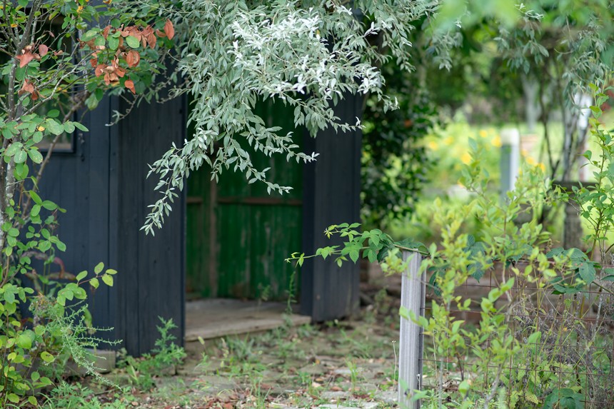 さらに管理棟を背にして左手に進むと、モデルガーデンという名のちょっとメルヘンチックなエリアに出ました。緑に囲まれた小屋やベンチが可愛い!