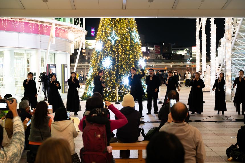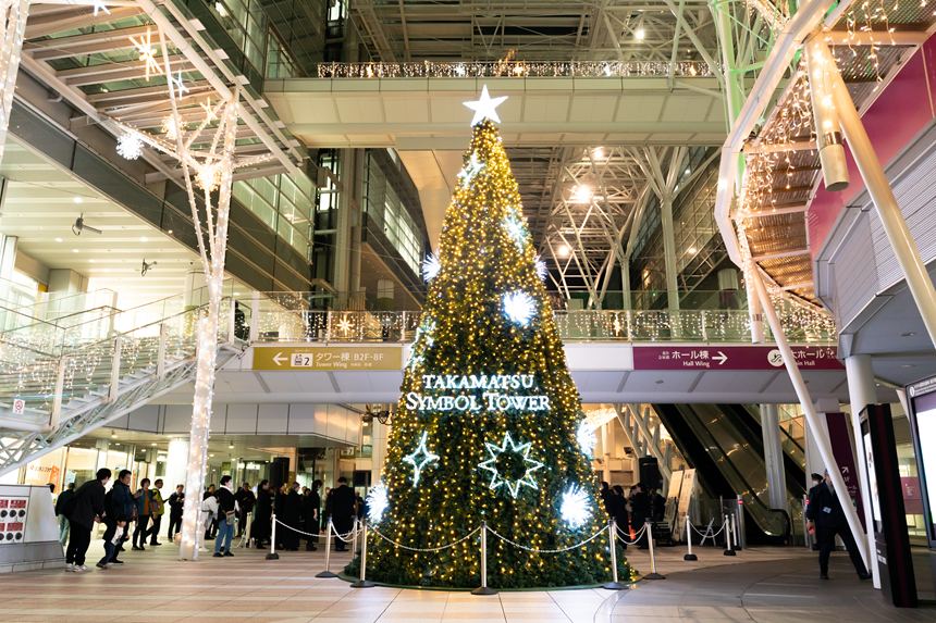 高松シンボルタワーのクリスマスツリーが点灯!12/25まで
