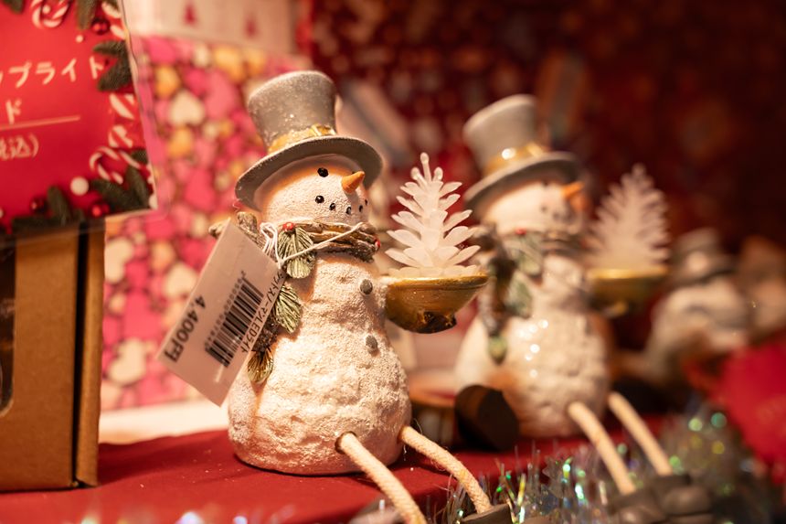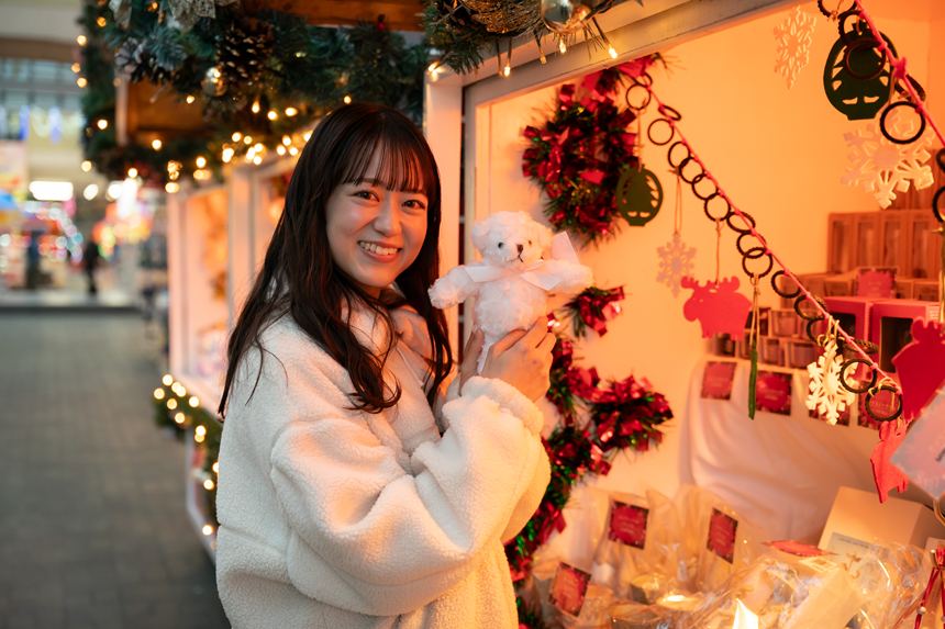 クリスマスツリーに飾るオーナメントやかわいいぬいぐるみなど、クリスマスグッズがたくさん売られていました。