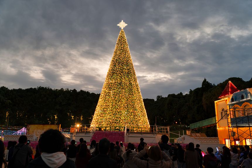 ぐるりとひと回りウェルカムプラザを楽しんだところでそろそろいい時間。バードランドにある大きなツリーに向かうと、今まさにイルミネーションが点灯されたところでした。
