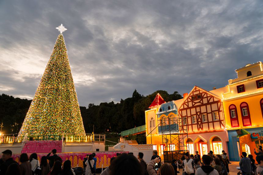 こちらでは毎日17:15に点灯式が行われ、この大きなツリーをはじめパーク内すべてのイルミネーションが一斉に灯されます。