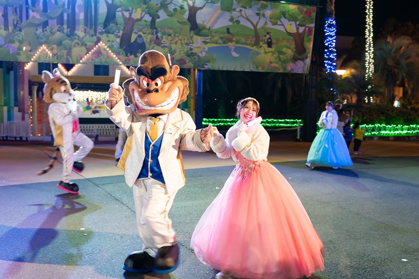 おとぎ話の本から飛び出したかのようなメルヘンチックな衣装で、ノリノリなのだから楽しくないわけがない。ダンサーさんやキャラクターたちと一緒にダンスをしながら見ると、日頃のストレスなんて吹っ飛びますよ~!