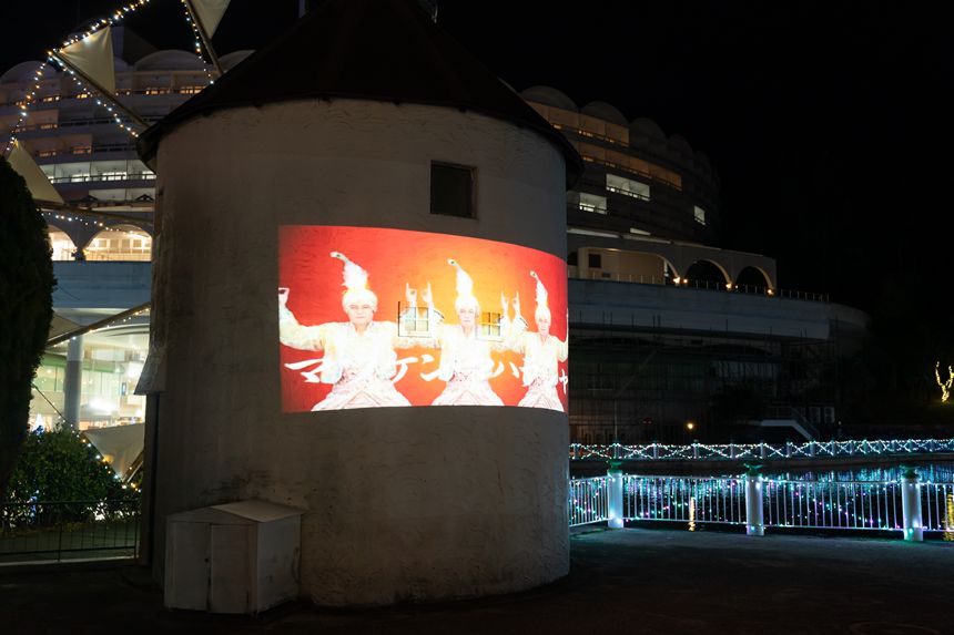 さらに風の道の橋の前ではマツケンサンバのステージ映像が投影され、またしてもノリノリで踊ることができます。