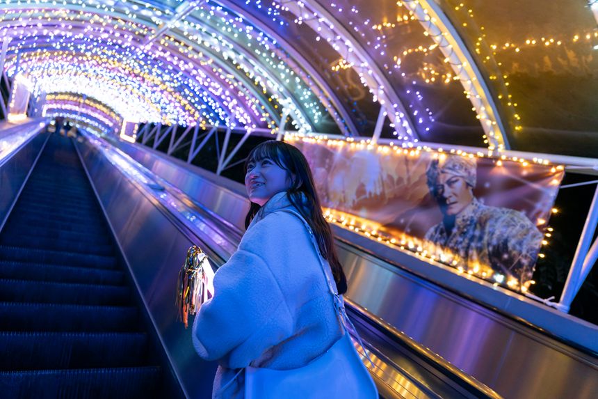 日本一長いエスカレーター「マジックストロー」も、マツケン一色! 「アモーレ MATSUKEN マジックストロー」と題し、息つくひまを与えません。
