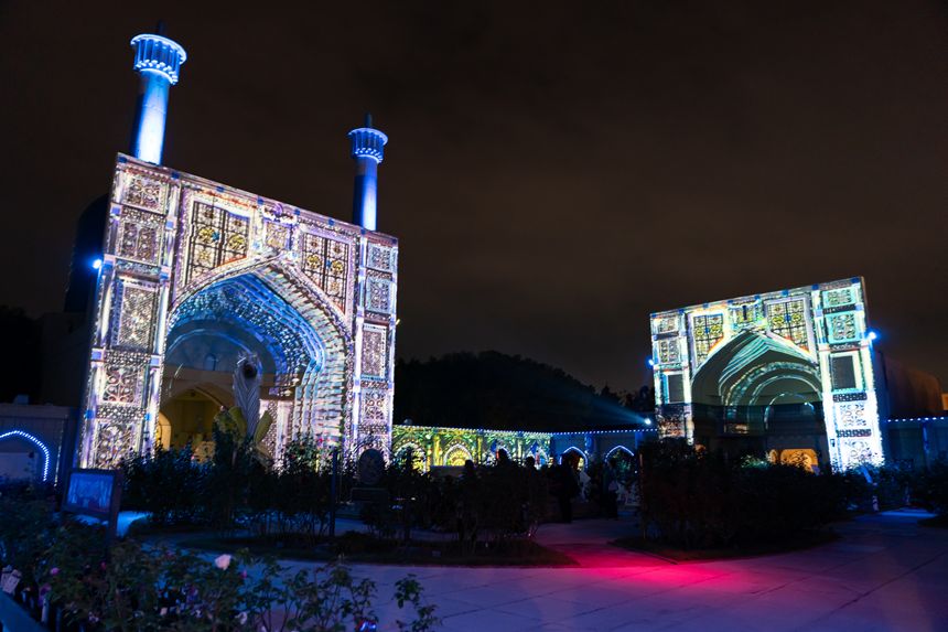 オリエンタルトリップのモスクに映し出される3D映像が迫力満点! ただでさえエキゾチックな場所なのに、遺跡に照らされた光の映像美が非日常どころか、異世界感すら漂わせます。思わずため息が出ました。