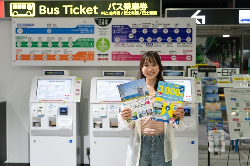高松空港からJR高松駅までは空港リムジンバスの利用となりますが、もし小豆島やことでん電車を利用するならお得なチケットがあります。それぞれ、リムジンバス往復+小豆島行きフェリー往復で2,900円(500円お得)、リムジンバスきっぷ2枚+ことでん電車1日フリーきっぷ2枚で3,000円(1,800円お得)という内容なので、ぜひ利用してみて! 高松空港のバス券売機で購入できます。