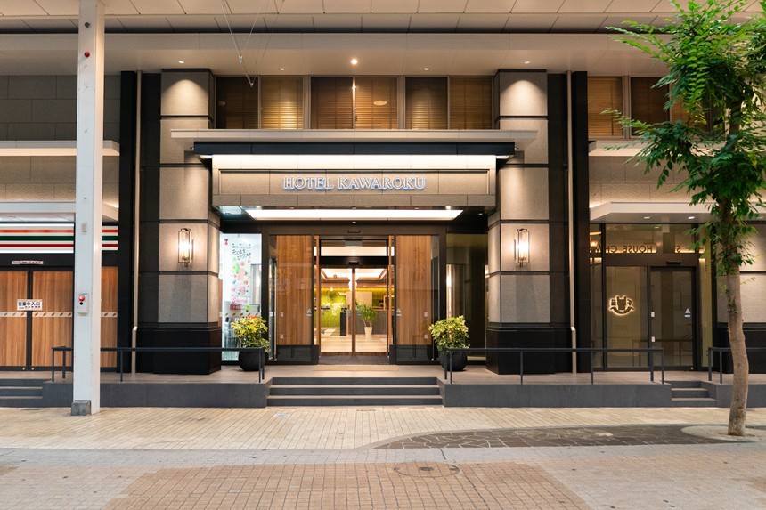 そして今回のお宿ですが、2022年7月に新メインタワーがオープンしてリッチな雰囲気になった「ホテル川六エルステージ高松」さんをチョイス。空港リムジンバス利用だと兵庫町バス停を下車し、商店街を歩いて5分ほどにあります。