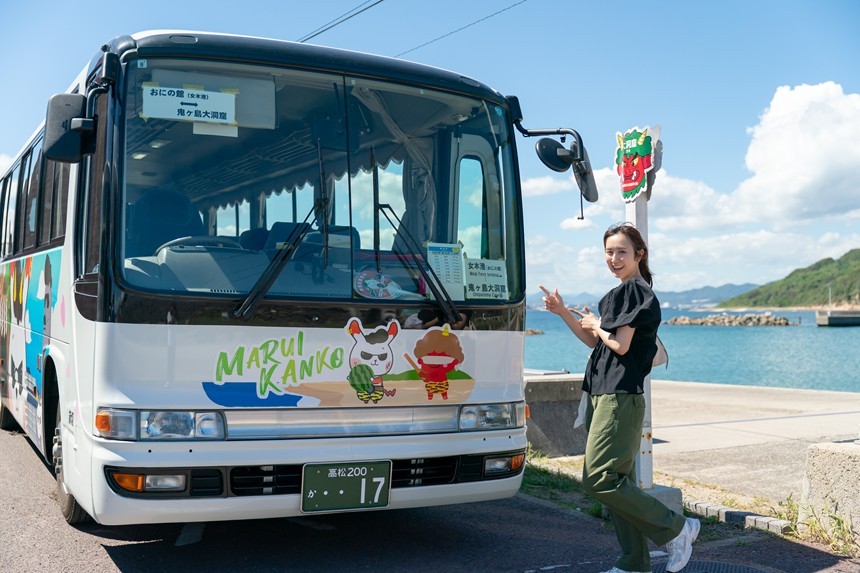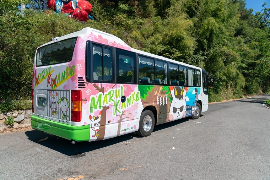 ガーカガワでも人気の二階建てオープントップバス「瀬戸内そらバス®」を運行しているマルイ観光バスさんが、鬼ヶ島にちなんだイラストが描かれたファンキーなバスを運行。さらに近日中には、バスの車内にも同様のキャラクターでラッピングされるそうです。これは楽しみ!