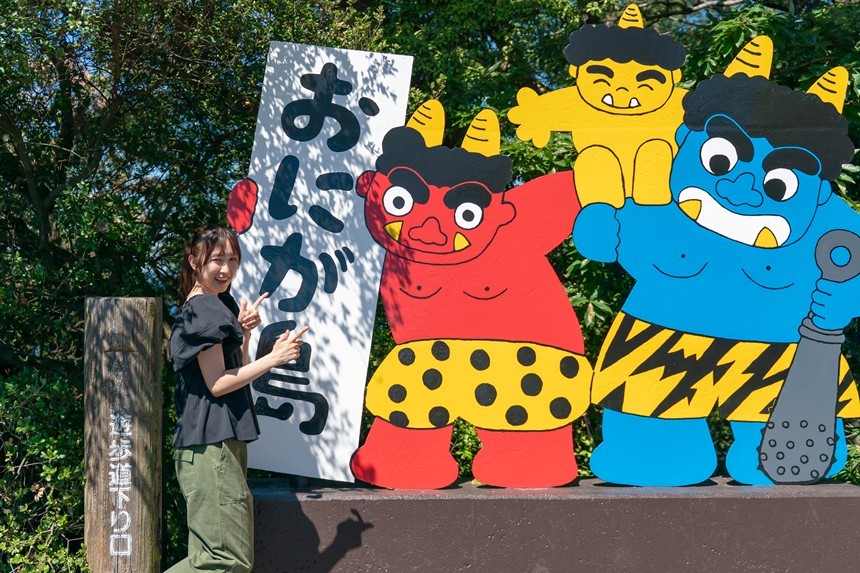 鬼ヶ島洞窟の入り口に着くと、いきなり鬼たちがお出迎え(笑)