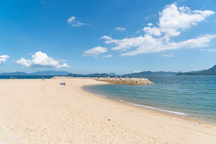 札幌近郊にも砂浜はあると思いますが、瀬戸内海の穏やかな砂浜もいいでしょう? りこモグさんは海水の温かさに驚いていました。