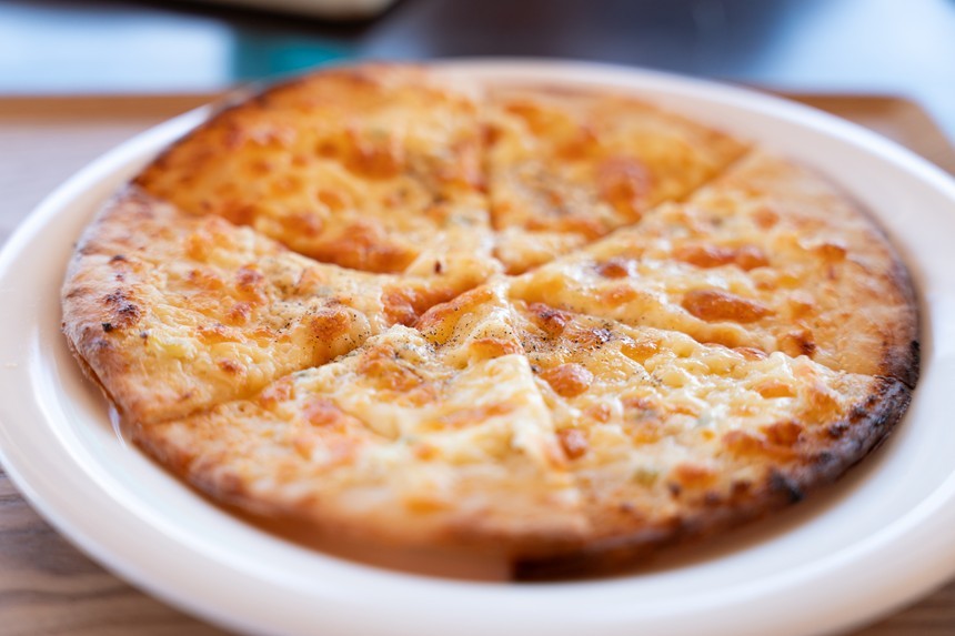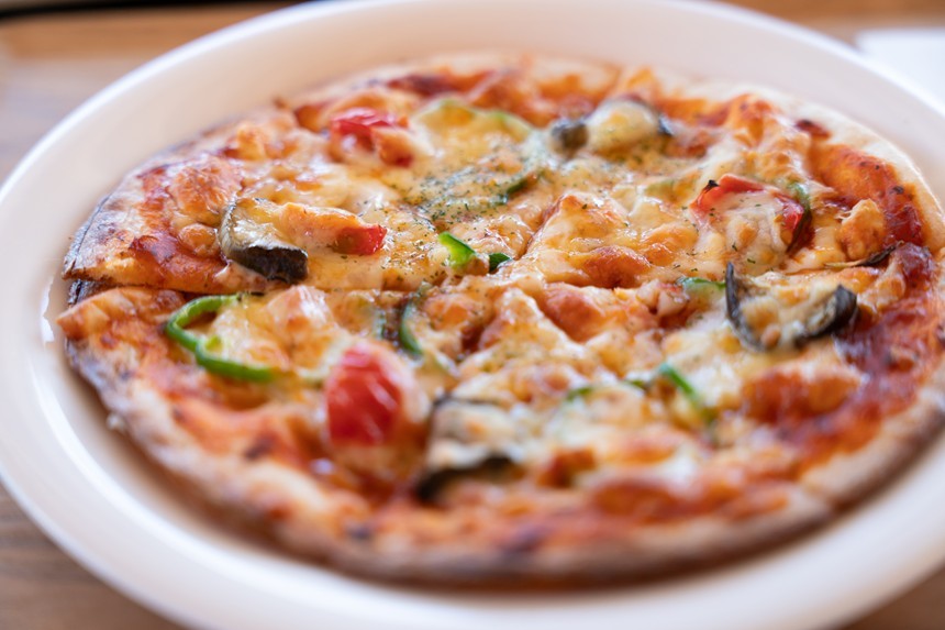 お店のおすすめを聞いたらやっぱりこれとのことで、女木島ニンニクピザ(900円)。女木島の名産であるニンニクと、産地でしか味わえないニンニクの芽をたっぷりトッピングしたパンチのあるピザです。