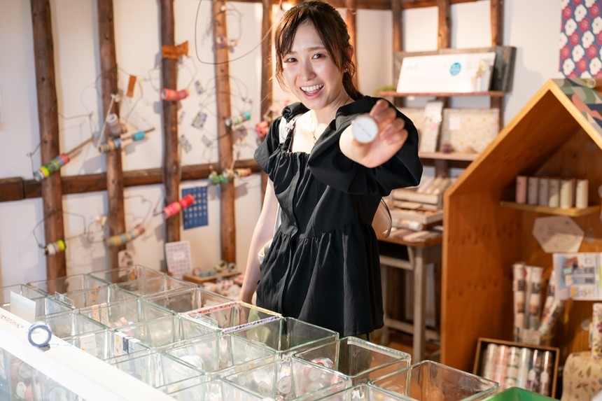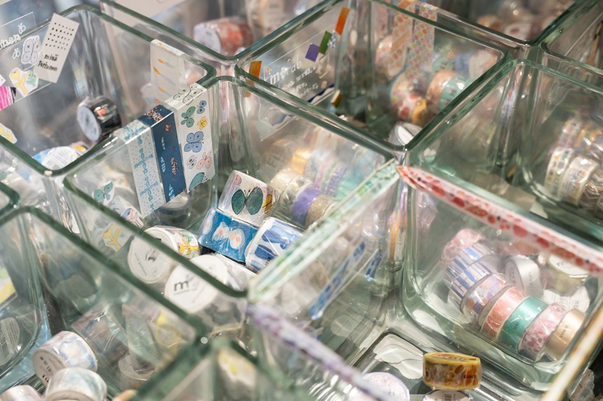 地元の大学生たちに人気なのが、このマスキングテープ。さまざまなデザインのものがぎっしりと販売されています。