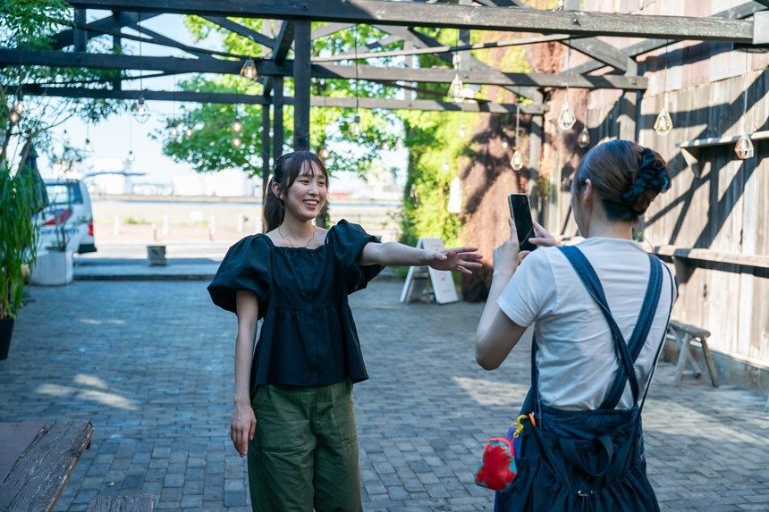 北浜アリーには、結婚式場やカフェ併設のパン屋さん、キッシュのお店に雑貨屋さんなど、個性的でおしゃれなお店が並んでいます。ロケーションがいいので、つい写真も撮りたくなります。