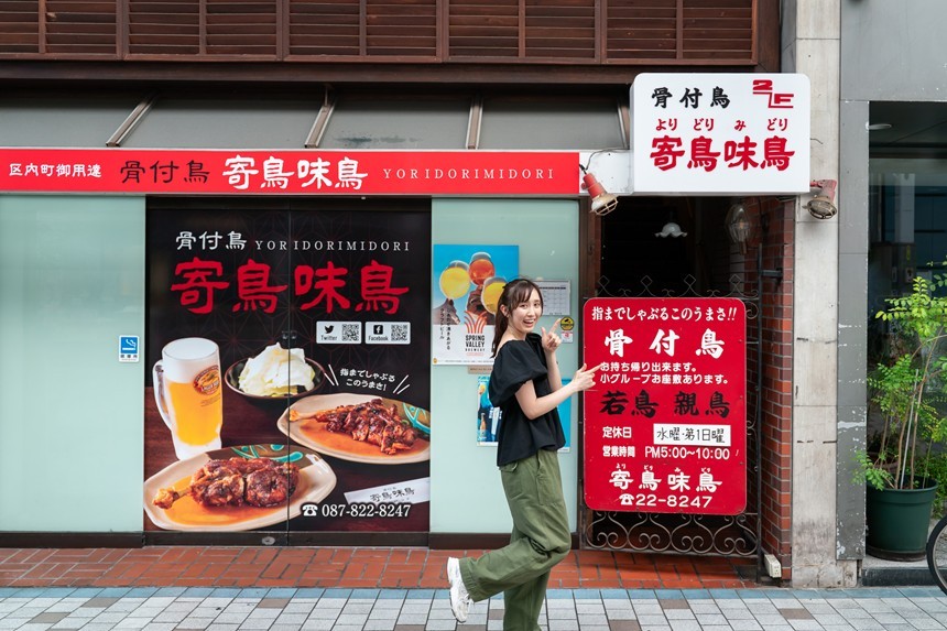 高松中央商店街のひとつ、兵庫町商店街にある骨付鳥の専門店「寄鳥味鳥(よりどりみどり)」さん。地元の人たちに人気のお店なんですよ。