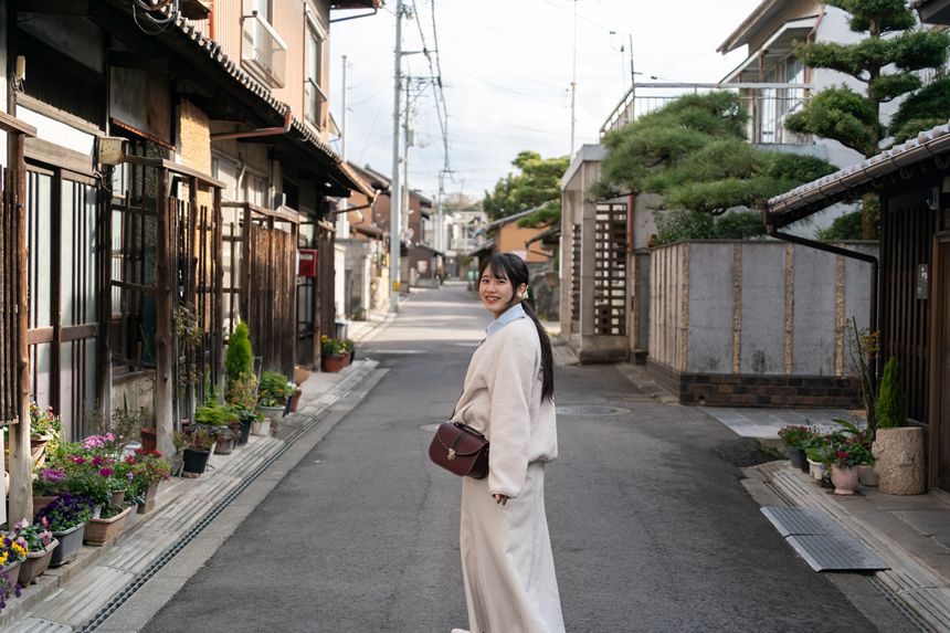 古い町家と最近建てられたような民家、そしてお寺や神社などが混在する町並みは、生活感もあってどこかほっとします。