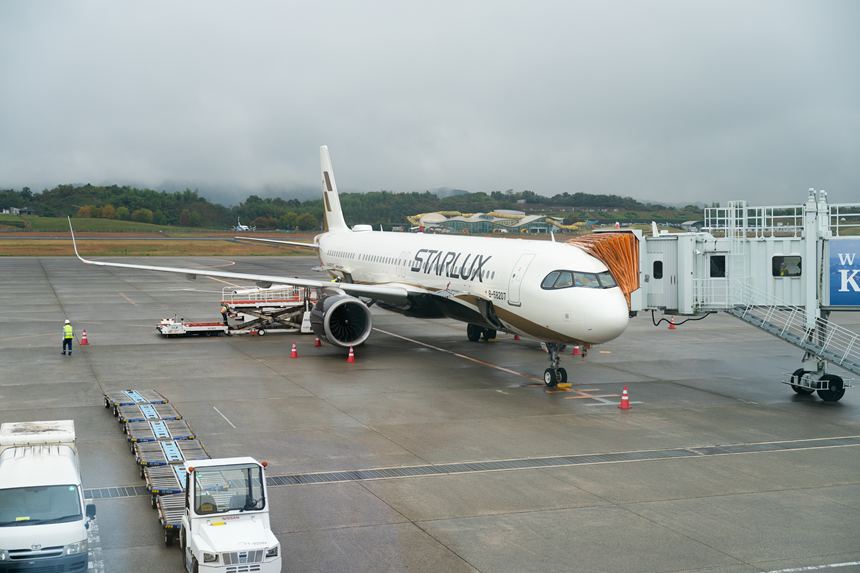 高松空港から台湾へは台北線が毎日運航、さらに台中線が週5往復運航の計2路線が運航中なのでめっちゃ便利! 今回利用するのはスターラックス航空の台中直行便です。