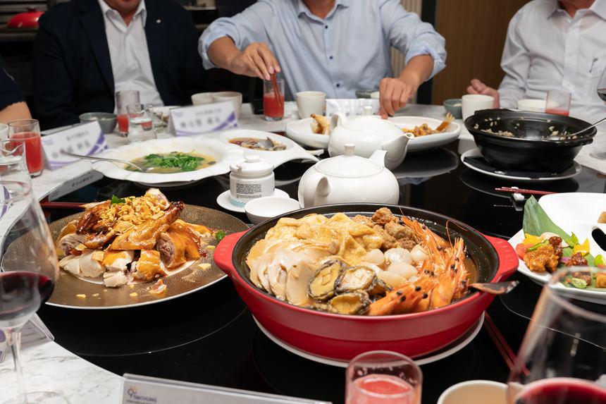 今回の台中滞在は、街の中心部に近い「金典綠園道商旅(Park Lane Inn)」というホテル。いったんホテルへチェックインした後、台中国際空港と台湾中部エリアの観光局の皆さんが歓迎夕食会を開いてくれました。料理は豪華だし、飲めや歌えの大宴会で、言葉は分からなかったけどめっちゃ楽しかった!