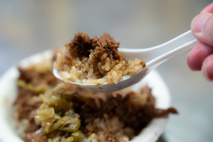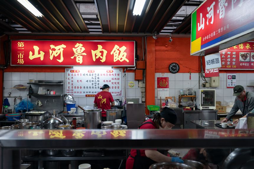 ここ第二市場にも早朝から営業しているお店があって、この時は朝の10時頃だったかな、すでに営業時間が終わっているお店もありました。そして、10時頃という中途半端な時間にもかかわらず行列ができるお店がこちら。山河魯肉飯っていうお店なのかな?