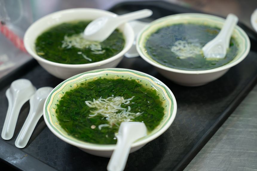 ちなみに菜っ葉のようなものが入ったスープ(麻薏湯だっけか?)は、ひと口いただきましたが、モロヘイヤっぼくて私にはちょっと苦手な味でした。せっかくなのにすみません、、
