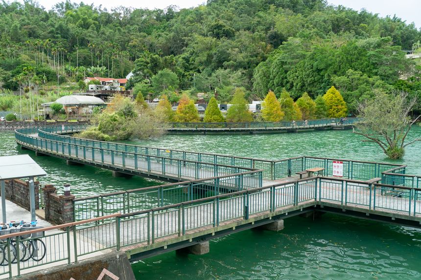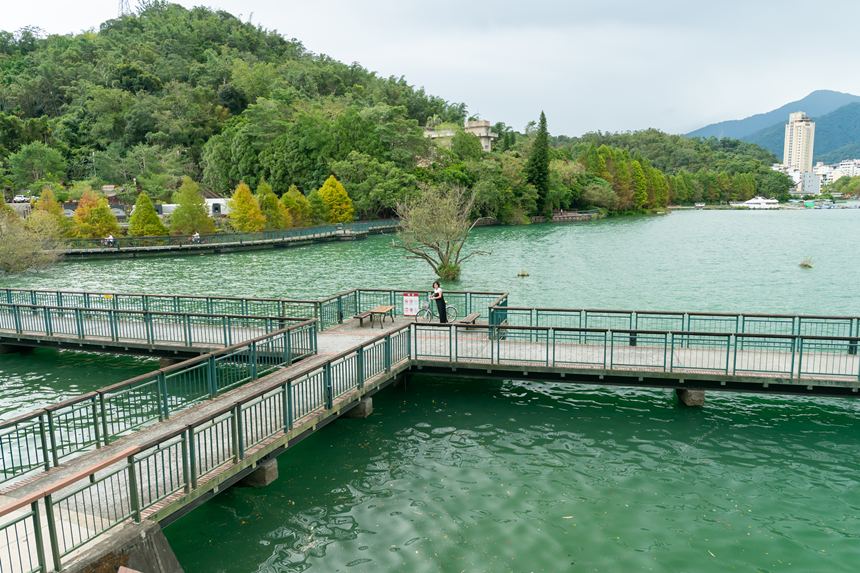 湖の北側が太陽(日)、南側が月の形に似ていることから日月潭と呼ばれるようになったそうですが、自転車を漕いでいるとフォトスポットだらけで、ついつい立ち止まってしまいます。