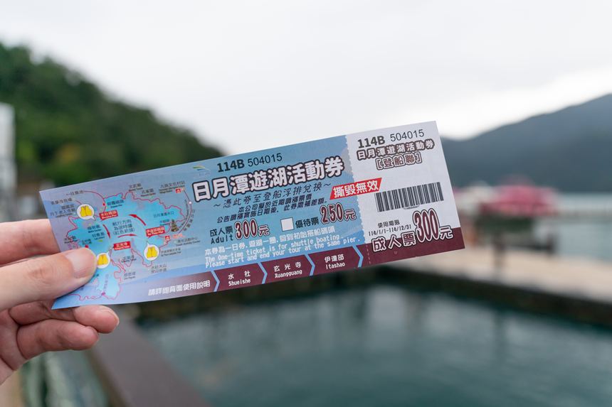 日月潭クルーズは、水社埠頭から出発し、玄光寺、伊達邵埠頭に寄港してまた水社埠頭へと帰ってくる遊覧船です。大人300元なので日本円にして1,500円ほどでしょうか、交通機関や乗り物類は総じて日本より安いようです。