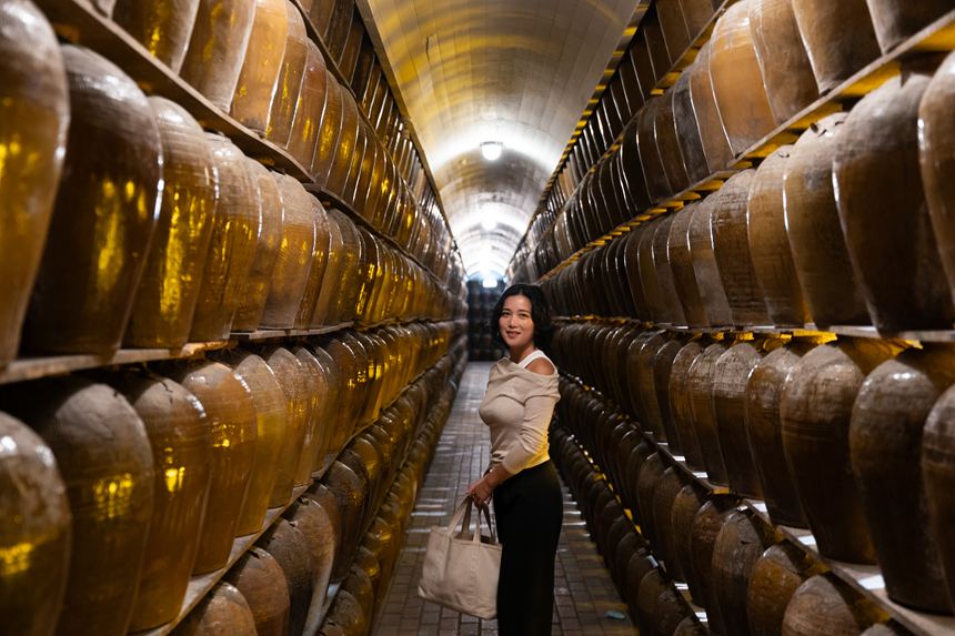 展示用の紹興酒の甕がびっしりと並んだ通路は圧巻!