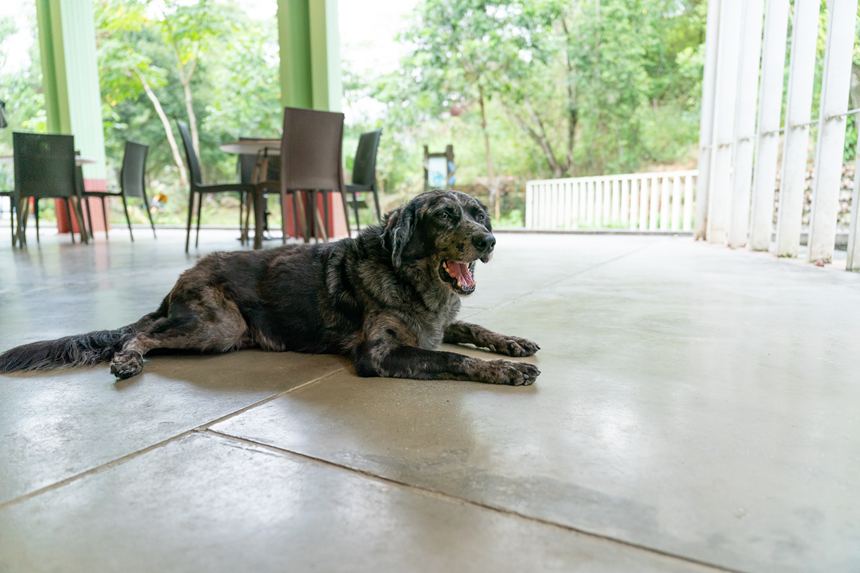 ここの主なのか、でっかいわんこもお出迎え。保護犬なんだそうです。