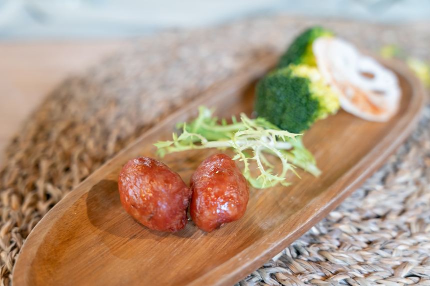 ちょっと八角味のする台湾っぽい味付けのソーセージも美味しい。
